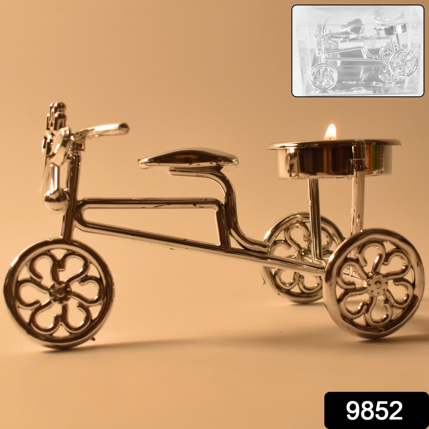 Cycle Tealight Holder / Candle Holder Decorative Candle For Diwali / Festive Plastic 1 - Cup Tealight Holder, Candle Glass Tealight Diya for Diwali Festival Home Decor and Gifting Purpose (1 Pc)