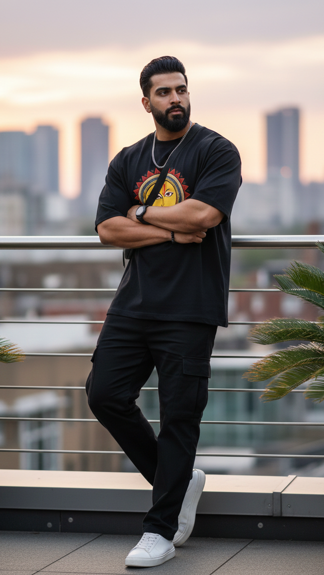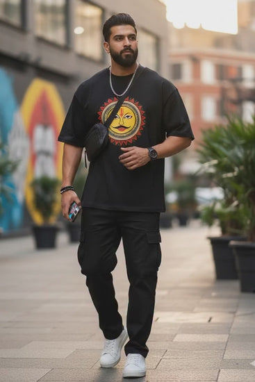 Embody the Radiance. Fusing ancient symbolism with modern street culture, our Sun Printed Oversized T-Shirt is more than just a garment—it’s a statement. Featuring a bold, traditional Indian-inspired sun graphic with intricate detailing, this tee brings cultural heritage to the forefront of Gen Z fashion.